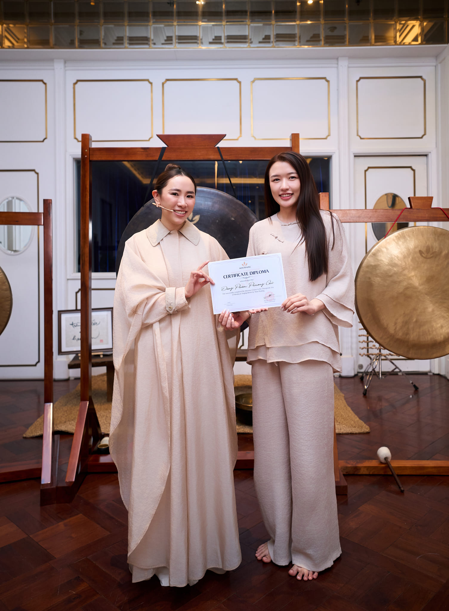 Là một trong những Master duy nhất ở Việt Nam! Được cấp bằng quốc tế, được phép đào tạo và trị liệu. Bà mong muốn giữ lại được toàn bộ những tinh hoa và giá trị của truyền thống lâu đời trong trị liệu Chuông của Nepal.